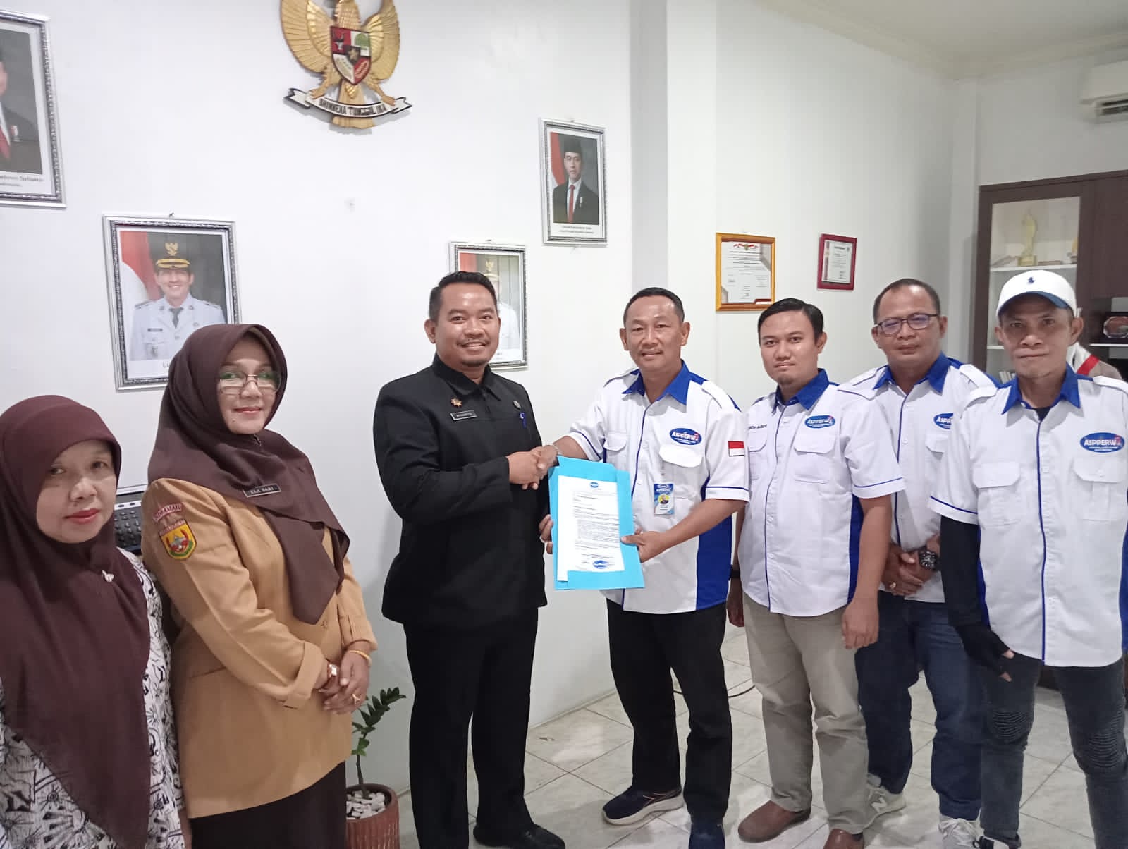 Plt Dispara Indramayu Winaryo, menerima surat penolakan larangan study tour dari Ketua Dewan Pengurus Wilayah (DPW) Asosiasi Pelaku Perjalanan Wisata Indonesia (ASPPERWI) Kabupaten Indramayu, Juwanda, Senin, 14 April 2025/indramayunews/Indra Maehadi