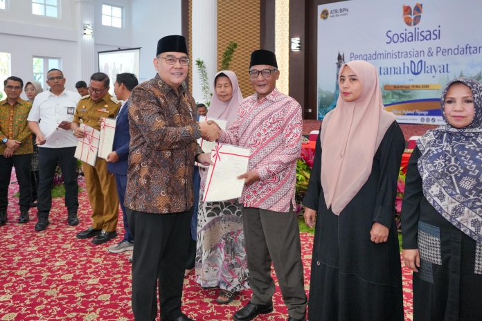 “Sertipikat tanah bukan pemberian negara, melainkan pengakuan negara atas hak yang sudah ada. Jadi ini adalah hak masyarakat hukum adat yang wajib dilindungi,” tegas Wakil Menteri Agraria dan Tata Ruang/Wakil Kepala Badan Pertanahan Nasional (Wamen ATR/Waka BPN), Ossy Dermawan, dalam acara Sosialisasi Pengadministrasian dan Pendaftaran Tanah Ulayat, di Rumah Dinas Wali Kota Bukittinggi, Senin (19/05/2025).