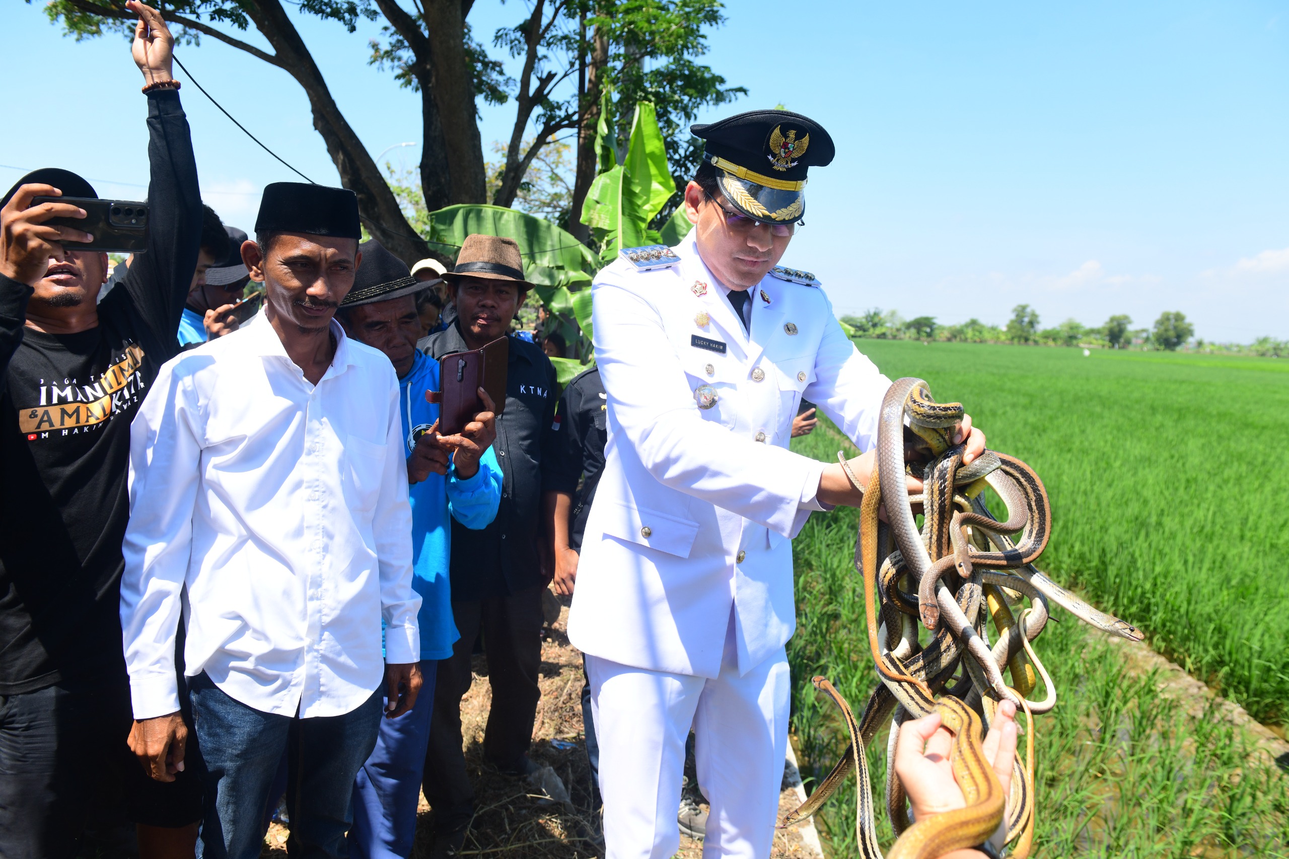 INDRAMAYU, indramayunews.id – Usai memimpin Upacara Puncak HUT ke-80 Kemerdekaan Republik Indonesia, Minggu (17/8/2025), Bupati Indramayu Lucky Hakim kembali melakukan langkah unik dalam mendukung sektor pertanian. Kali ini, ia melepas ratusan ular, biawak, dan burung hantu di areal persawahan Desa Limbangan, Kecamatan Juntinyuat.
