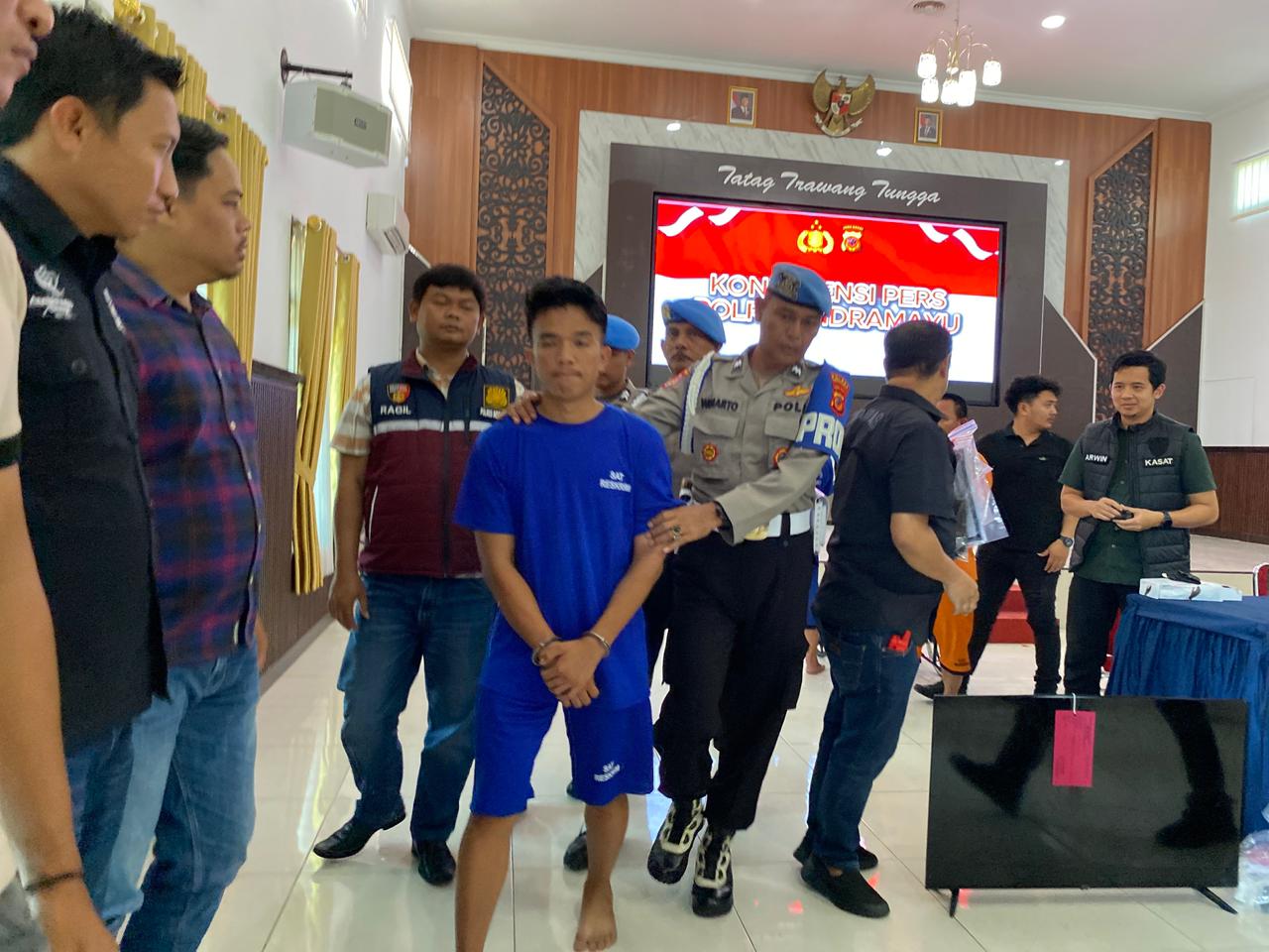 Kapolres Indramayu, AKBP Mochamad Fajar Gemilang, dalam konferensi pers menjelaskan bahwa AMS sebelumnya bertugas di Satuan Reskrim Polres Indramayu.