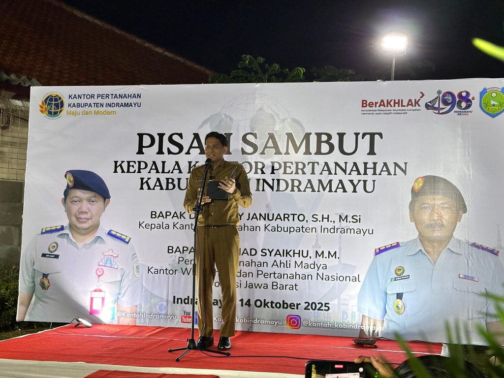 Acara tersebut menjadi momen penuh kehangatan dalam rangka serah terima jabatan dari Ir. Ahmad Syaikhu, M.M. kepada Dwi Hary Januarto, S.H., M.Si. sebagai Kepala Kantor Pertanahan Kabupaten Indramayu yang baru.