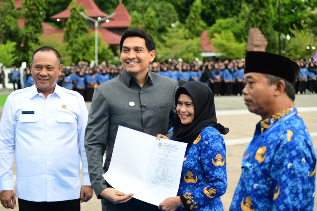“Sudah berseragam seperti ini berarti kita membawa nama baik pemerintah daerah. Jaga sikap, jaga tutur kata, dan gunakan media sosial dengan bijak. Tutur kata adalah cerminan hati. Jaga akhlak, tetap semangat, dan semoga lancar dalam bekerja,” ucapnya penuh makna.