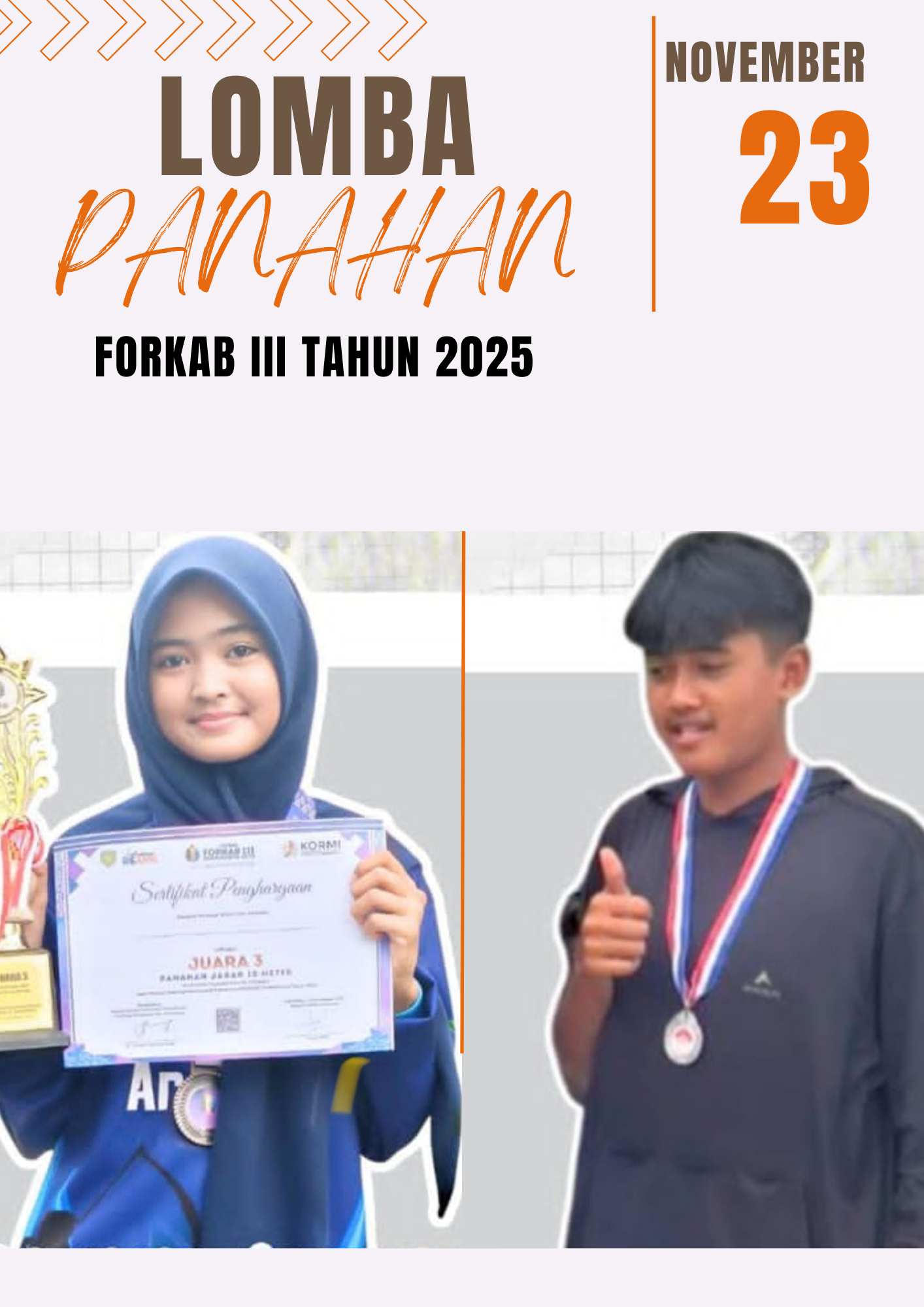 Hafshah Hanifah Hanin sebagai juara umum 3 Kategori SMP Putri 10 Meter. Sementara Muhammad Adam, meraih Juara 2 Bantalan 5 Kategori SMP Putra 10 Meter Inorga Panah Indonesia (PI) FORKAB Indramayu.”Prestasi di bidang olahraga panahan ini cukup membanggakan.