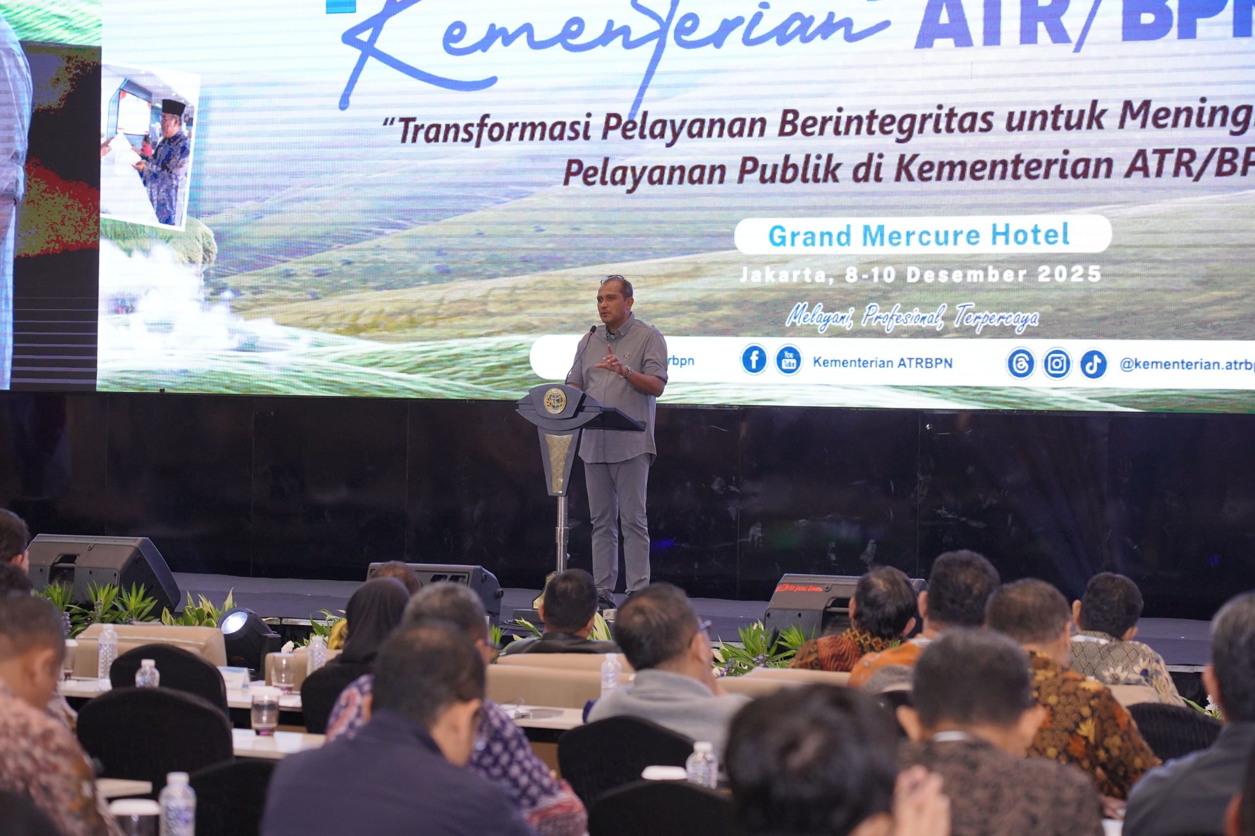 Di hadapan ratusan jajaran ATR/BPN, Wamen Hukum mengatakan bahwa transparansi dan akuntabilitas menjadi indikator profesionalisme pelayanan publik. Menurutnya, masyarakat harus memperoleh akses yang jelas terhadap informasi, proses bisnis, hingga standar operasional prosedur (SOP). “Ini penting agar masyarakat merasakan bahwa pemerintah hadir untuk menyelesaikan masalah mereka,” tuturnya.