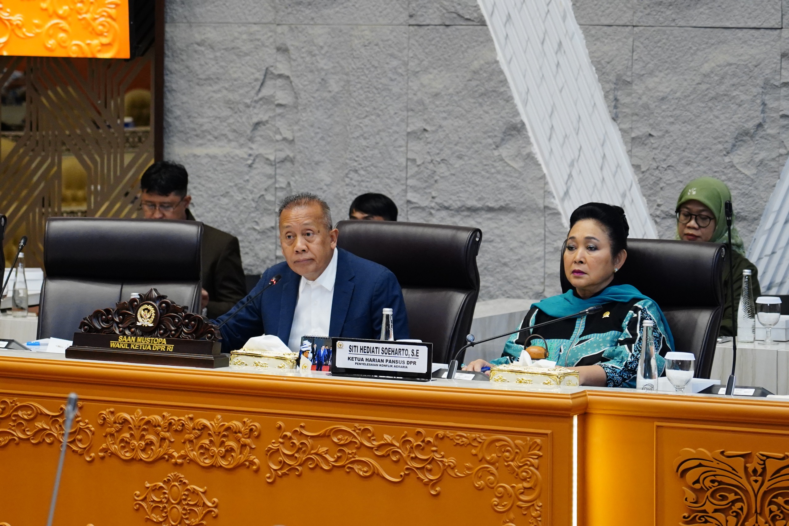 Raker tersebut dipimpin oleh Wakil Ketua DPR RI, Saan Mustopa, dan diikuti oleh Ketua Panitia Tim Pansus DPR RI Penyelesaian Konflik Agraria, Siti Hediati Soeharto, serta sejumlah Menteri/Kepala dan Wakil Menteri/Wakil Kepala dalam Kabinet Merah Putih. Turut mendampingi Menteri Nusron dalam kegiatan tersebut, Direktur Jenderal Survei dan Pemetaan Pertanahan dan Ruang, Virgo Eresta Jaya; Direktur Jenderal Penataan Agraria sekaligus Pelaksana Tugas Direktur Jenderal Pengadaan Tanah dan Pengembangan Pertanahan, Embun Sari; Staf Khusus Bidang Reforma Agraria, Rezka Oktoberia; serta sejumlah Pejabat Pimpinan Tinggi Pratama di lingkungan Kementerian ATR/BPN. (TIM)