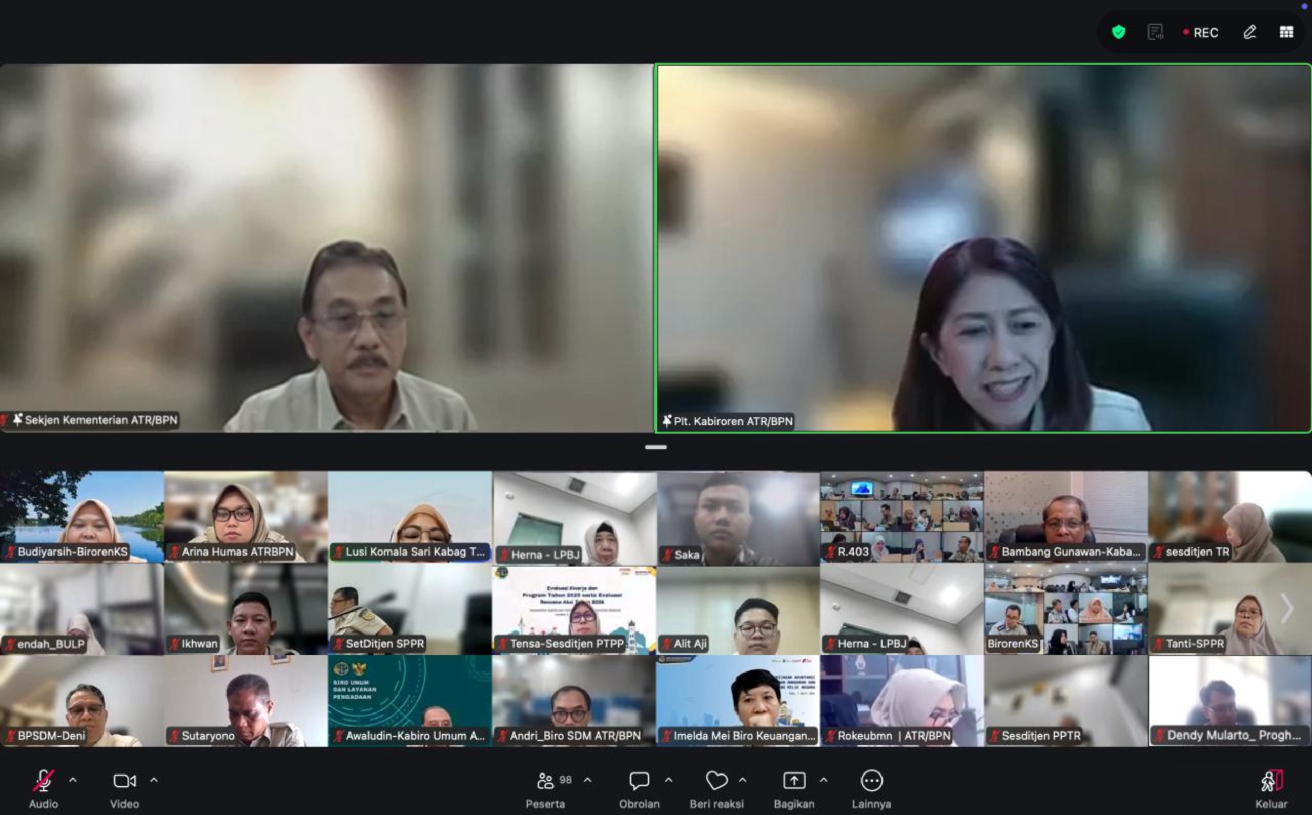 Pada pertemuan yang diikuti oleh 100 pegawai dari perwakilan unit kerja pusat Kementerian ATR/BPN ini, hadir Plt. Kepala Biro Perencanaan dan Kerja Sama, Andi Tenri Abeng. Ia melaporkan, Biro Perencanaan dan Kerja Sama telah mengevaluasi bahwa sejak 2025 banyak KRO dan RO yang sudah tidak sesuai dan out of date dengan pelaksanaan di lapangan.