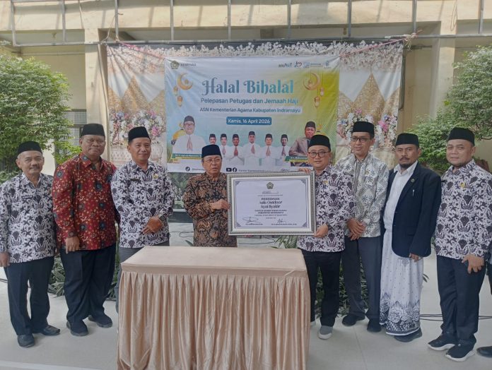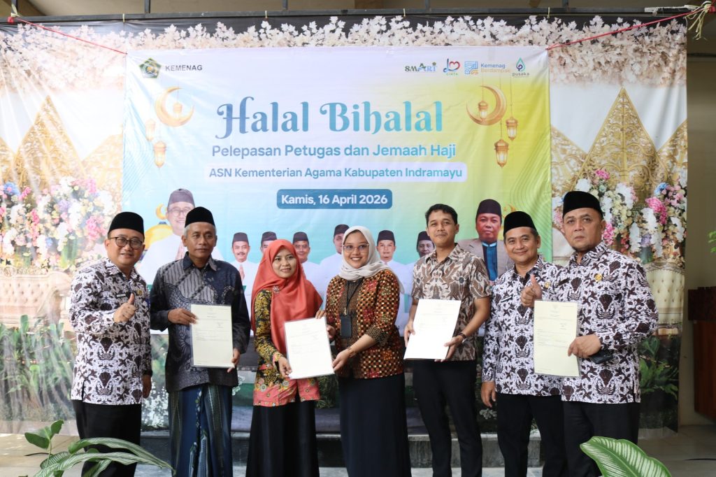 INDRAMAYU, indramayunews.id – Kantor Kementerian Agama (Kemenag) Kabupaten Indramayu menggelar kegiatan Halal Bihalal yang dirangkaikan dengan pelepasan petugas dan jemaah haji dari kalangan Aparatur Sipil Negara (ASN), Kamis (16/4/2026). Kegiatan berlangsung khidmat di Aula Kantor Kemenag Kabupaten Indramayu.