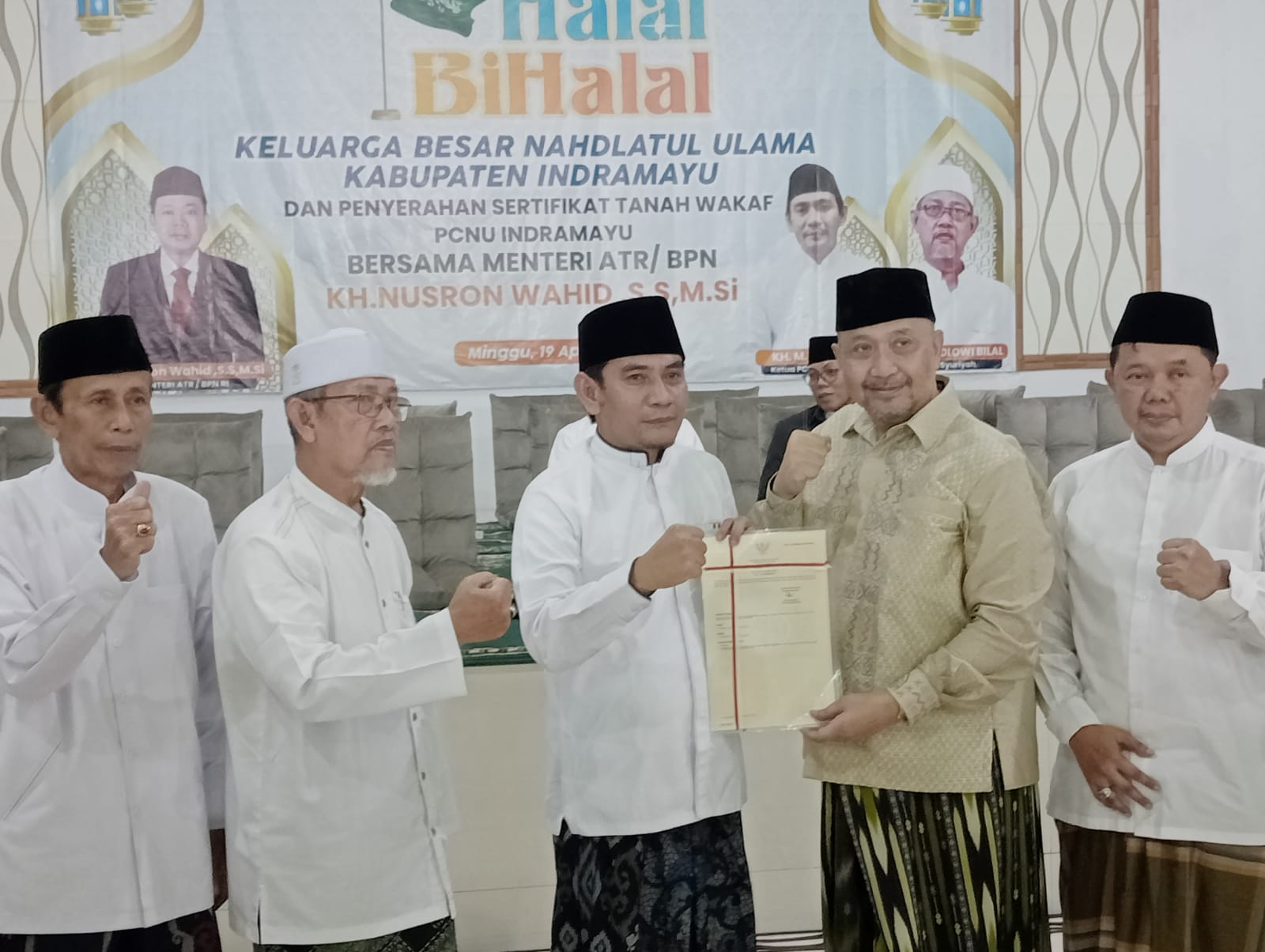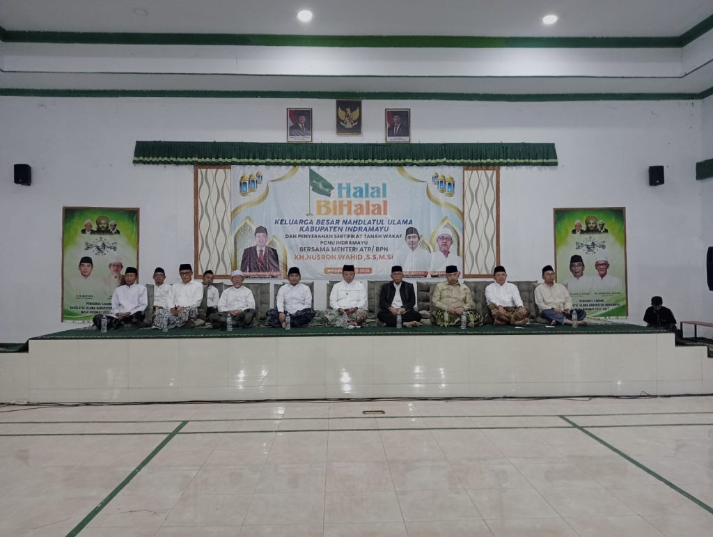 Apresiasi tersebut disampaikan dalam kegiatan Halal Bihalal Keluarga Besar NU Kabupaten Indramayu yang dirangkaikan dengan penyerahan sertifikat tanah wakaf untuk Gedung PCNU Indramayu, Minggu (19/4/2026), di Aula Gedung Dakwah PCNU Indramayu.
